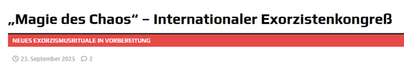 - „Magie des Chaos – Internationaler Exorzistenkongress“ katholisches.info (23. September 2025)