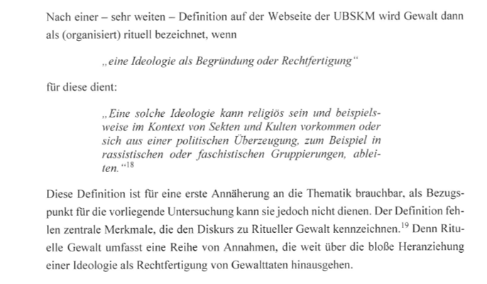 Der Untersuchungsbericht der Kanzlei Feigen · Graf kritisiert zu Beginn völlig zu Recht den Definitionswirrwarr um den Begriff „Rituelle Gewalt“ (Seite 14)