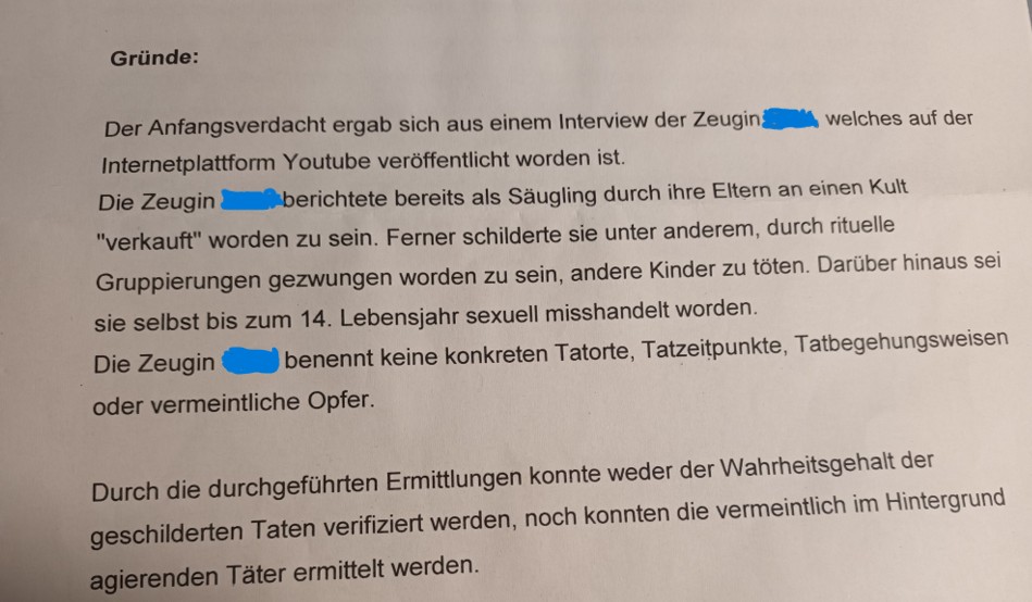 Im Blick auf die untersuchten Fälle spricht nichts dafür, dass die Beschuldigten die ihnen vorgeworfenen Taten Ritueller Gewalt begangen haben könnten.