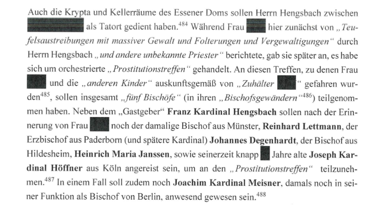 Die Rede ist von Franz Kardinal Hengsbach, Joseph Kardinal Höffner, Joachim Kardinal Meisner, Johannes Kardinal Degenhardt, Bischof Reinhard Lettmann, Bischof Heinrich Maria Janssen, Bischof Josef Homeyer, Bischof Heinrich Tenhumberg, Weihbischof Friedrich Ostermann, Weihbischof Alfons Demming, Weihbischof Franz Grave und Weihbischof Heinrich Janssen – allesamt hohe ehemalige Würdenträger der Bistümer Münster, Essen, Hildesheim sowie der Erzbistümer Köln und Paderborn.