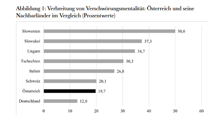 Dass solche Erhebungen – je nach Methodik und Fragestellung – aber auch stark voneinander abweichen können, haben wir hier erklärt. Ein aktuelles Forschungsprojekt in Österreich kommt auf rund 13 Prozent „Verschwörungsmentalität“ in Deutschland und 20 Prozent in Österreich: