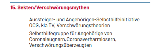 Die „Aussteiger- und Angehörigenselbsthilfeinitiative OCG, kla-tv, Verschwörungstheorien“ beim Selbsthilfezentrum München ist per E-Mail erreichbar: selbsthilfeinitiative@protonmail.com