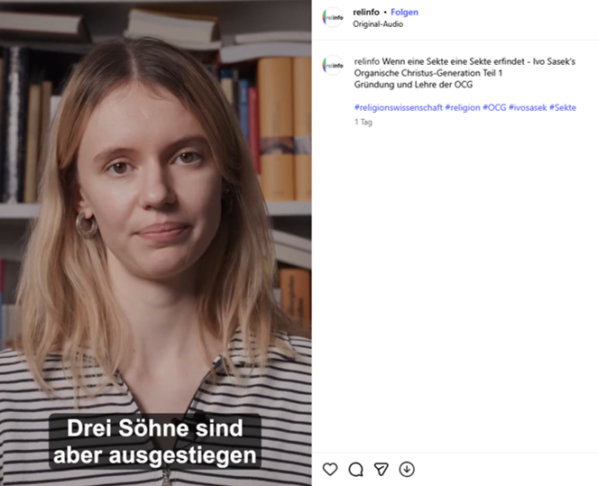 - Büchler, Lou „Wenn eine Sekte eine Sekte erfindet – Die Organische Christus-Generation verbreitet die Blutsekten-Verschwörungstheorie“ relinfo (1. September 2025)