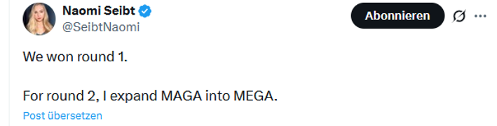 Nichtsdestotrotz avanciert sie damit in den USA zum „right-wing darling“, bis hin zu einem Auftritt bei Alex Jones (Video), der sie als „deutsche Top-Journalistin“ vorstellte. Tatsächlich ist Seibt eine Aktivistin, die sich als „Brücke zwischen Deutschland und der MAGA-Bewegung“ versteht: