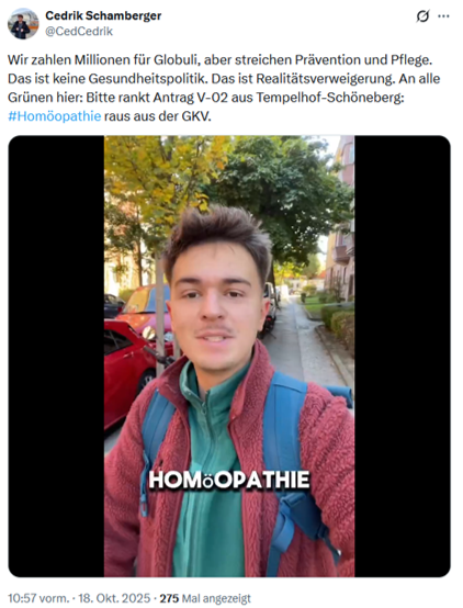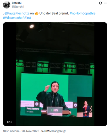 - Video „Spektakuläre Kehrtwende – Grüne lehnen Homöopathie als Kassenleistung ab“ welt (29. November 2025)