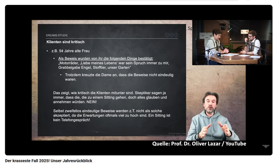 - Harder, Bernd „Völlig losgelöst: Die EREAMS-Studie zu Jenseitskontakten bei den Quarks Science Cops“ skeptix (31. Oktober 2025)