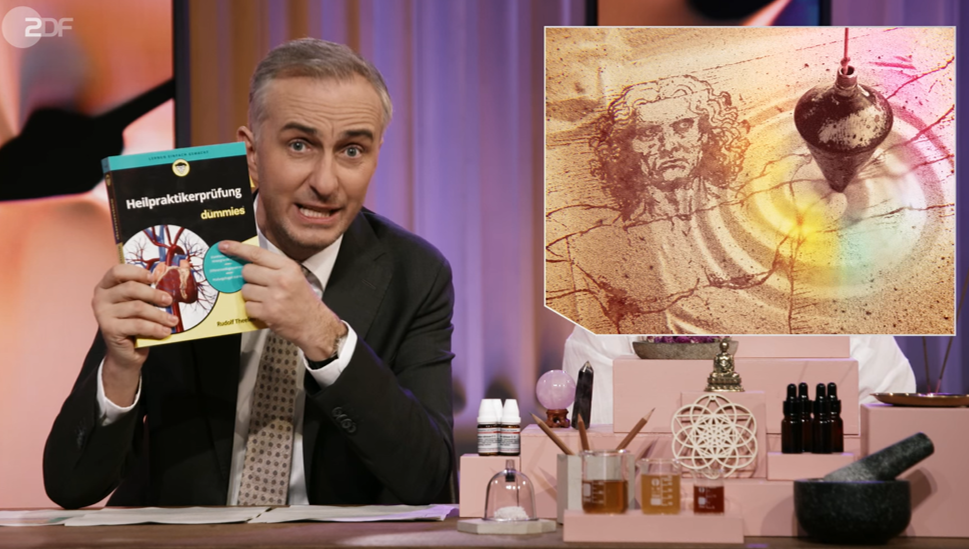 So isses. Während die Quacksalber-Zunft schon vor der Ausstrahlung der Sendung am Freitagabend um 23 Uhr nach dem ZDF-Fernsehrat plärrte, äußerte Jan Böhmermann die Hoffnung, dass solche Anachronisten im Gesundheitswesen bald ebenso verschwinden mögen wie dereinst Gasriecher oder Lichtputzer: