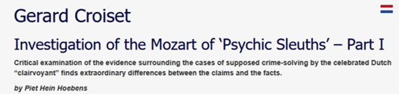 - Hoebens, Piet Hein „Gerard Croiset: Investigation of the Mozart of Psychic Sleuths“ skepsis (1981)