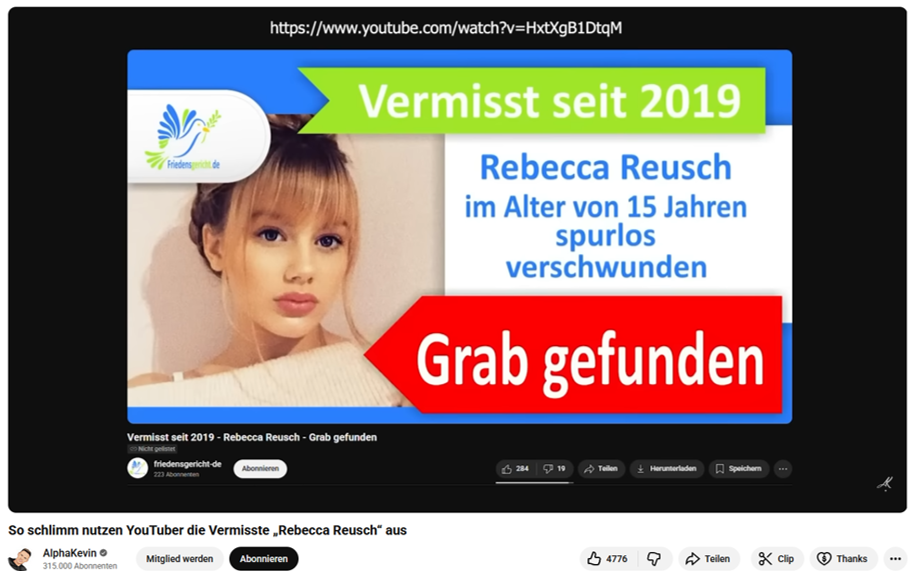 Sie wollen nur helfen, Rebecca zu finden, betonen die Beteiligten selbst bei ihren Aktionen. Doch natürlich geht es auch um Geld. Klicks und Reichweite lassen sich monetarisieren.
