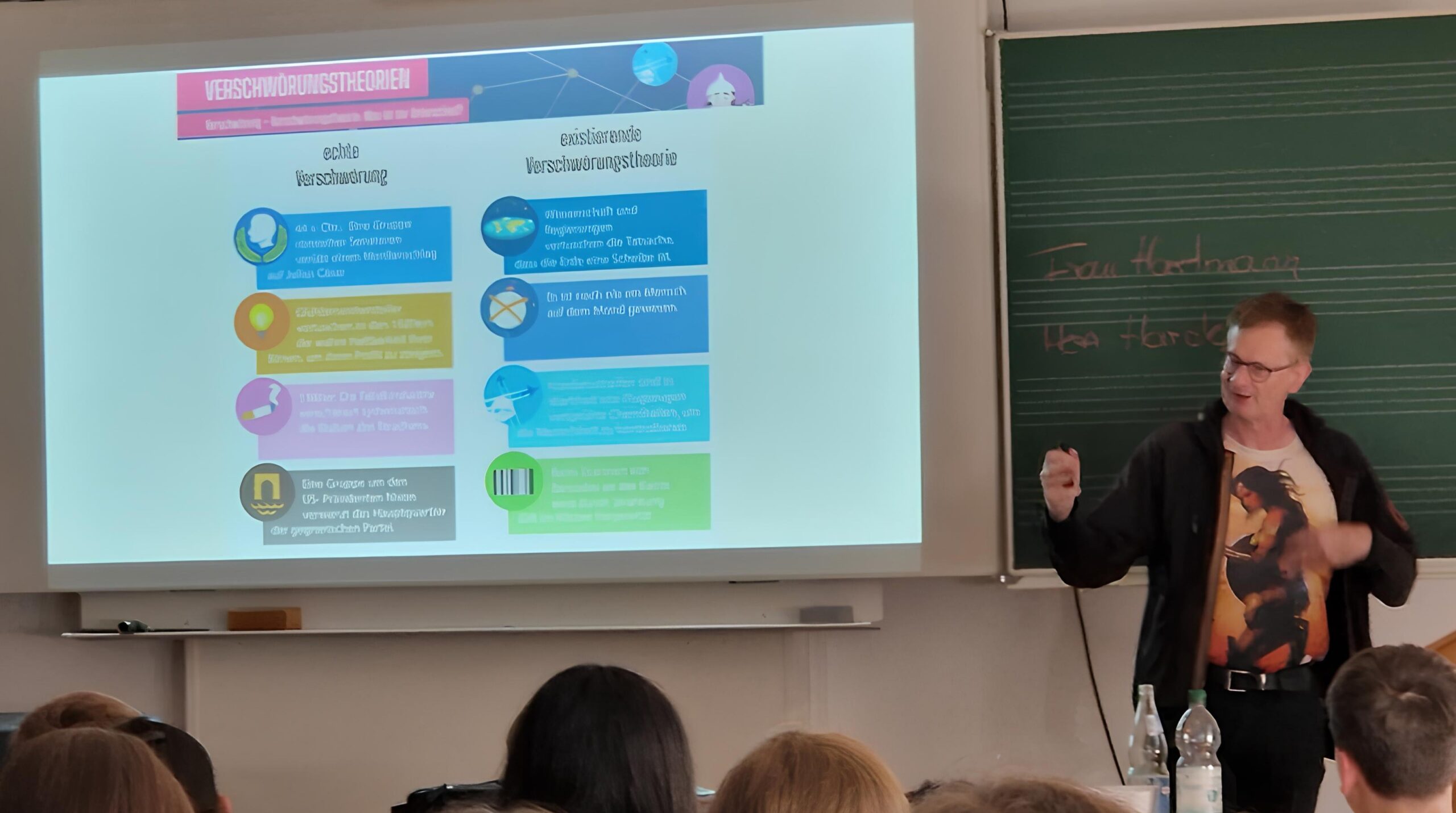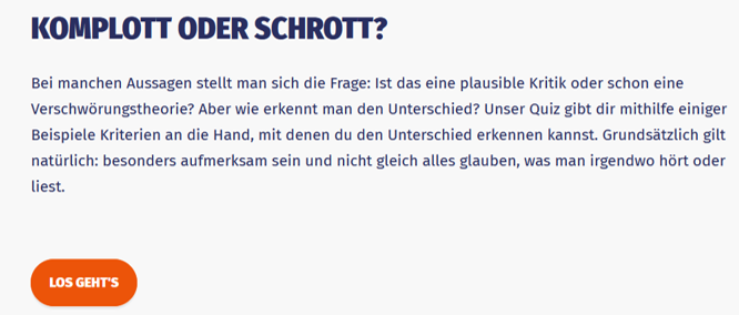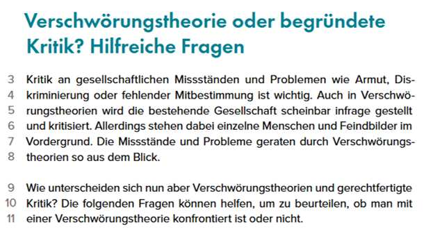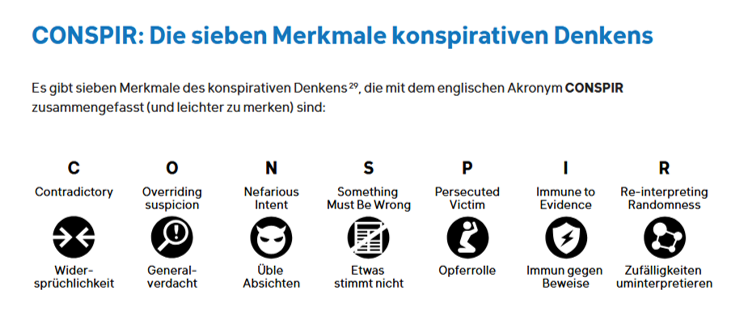 Das kennen wir schon zur Genüge, etwa von Lisa Fitz, die den Unterschied zwischen kritischem Hinterfragen und Verschwörungstheorien auch nie so richtig verstanden zu haben scheint. Dabei ist gerade diese Differenzierung Bestandteil der meisten Aufklärungsmateralien zum Thema und sollte auch in jedem Vortrag zur Sprache kommen: