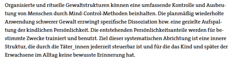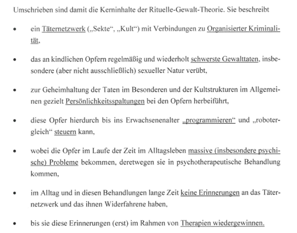 Eine Zusammenfassung formuliert auch das Münsteraner Gutachten zu „Ritueller Gewalt“ (Seite 13 ff.):